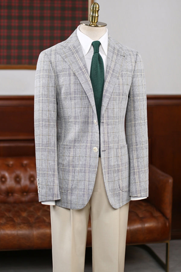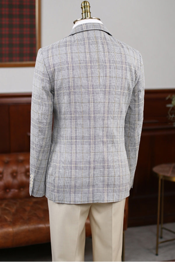 Gray Plaid Notched Lapel Formal Suits with Khaki Pants