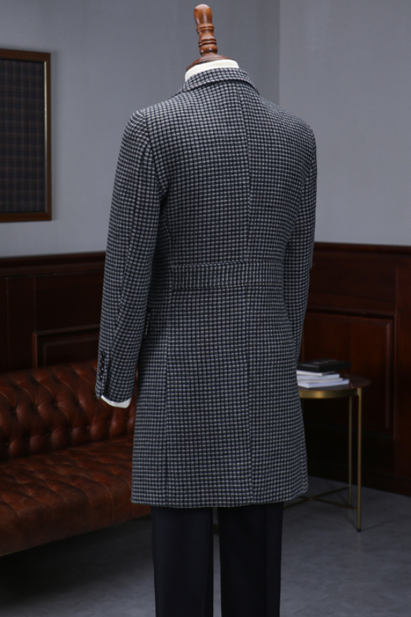 Houndstooth Peaked Lapel Double-Breasted Vintage Wool Men's Coat